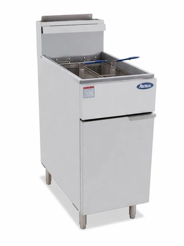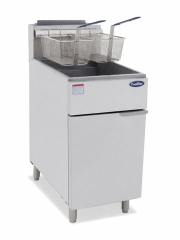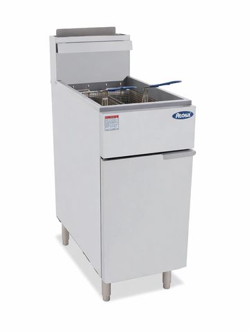 Five tube gas deep fryer with stand. Maximum frying capacity for high-volume operations.